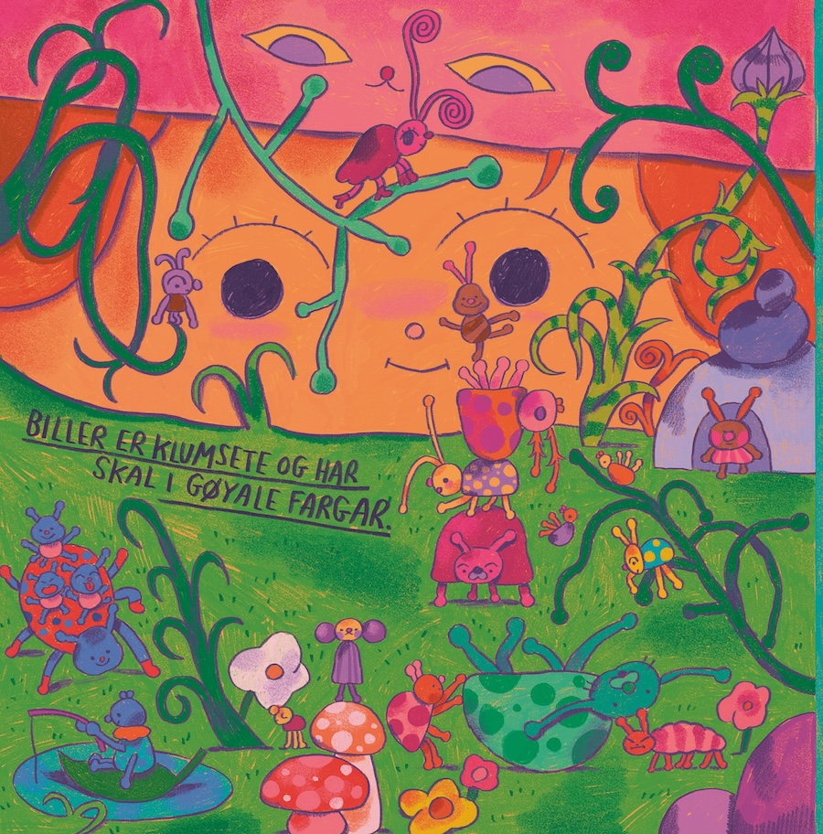 Det første som slår ein er fargane, som er tydeleg handkolorerte, tjukke, feite og sterke tusjfargar. Det vesle formatet til boka kler dei enkeltsidige oppslaga med tilhøyrande korte tekstar. Og det er i detaljane sjarmen ligg; alle dei små insekta som ikkje ser ut som insekt i det heile, men som ein slags glade og hektiske fantasifigurar like inspirerte av austlege teikneseriar som av nordiske småkryp.